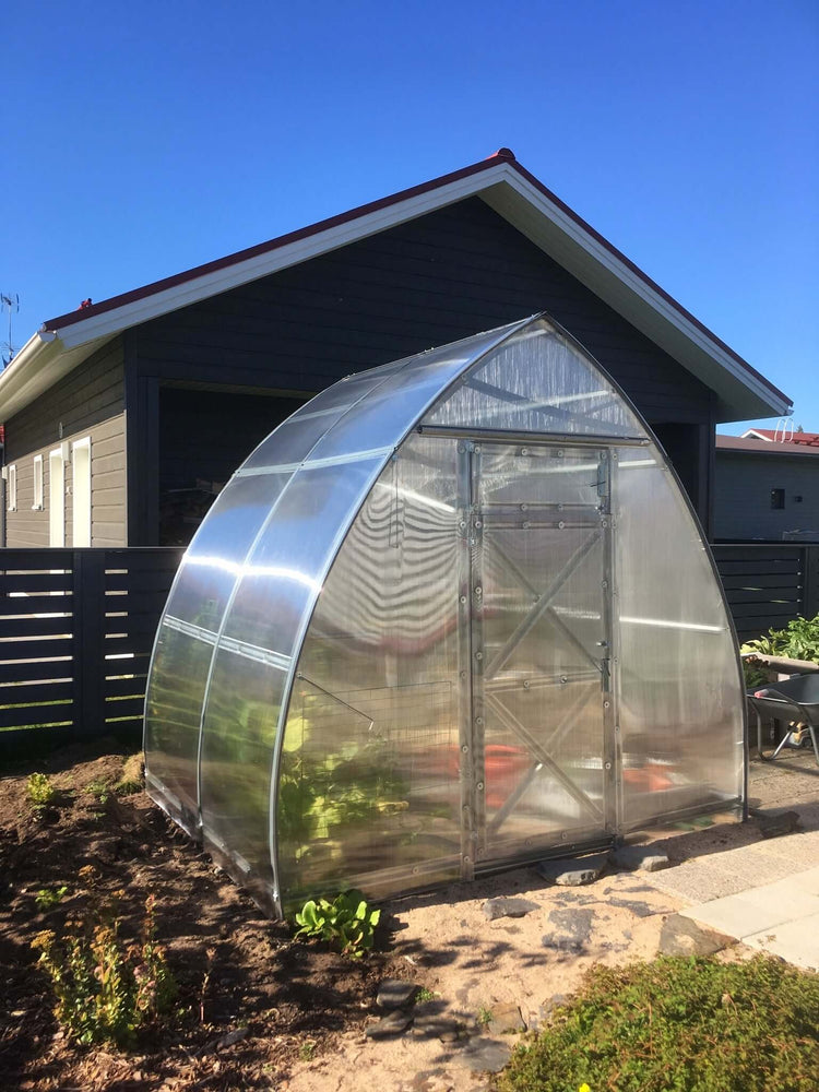 Kasvihuone Omega Drop terässokkelilla 5 m²