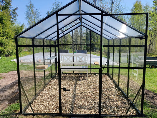 Kasvihuone MUSTA Sanus XL-9 8,4 m² turvalasi+kennolevy