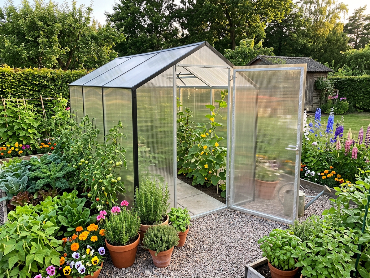 - Käytännölliset lisäosat: Kasvihuoneeseen sisältyy yksi automaattinen tuuletusluukku. Kattoikkunoita voit tarvittaessa tilata lisää lisävarusteina. Lisävarusteena saatavilla myös ovi takaseinään.