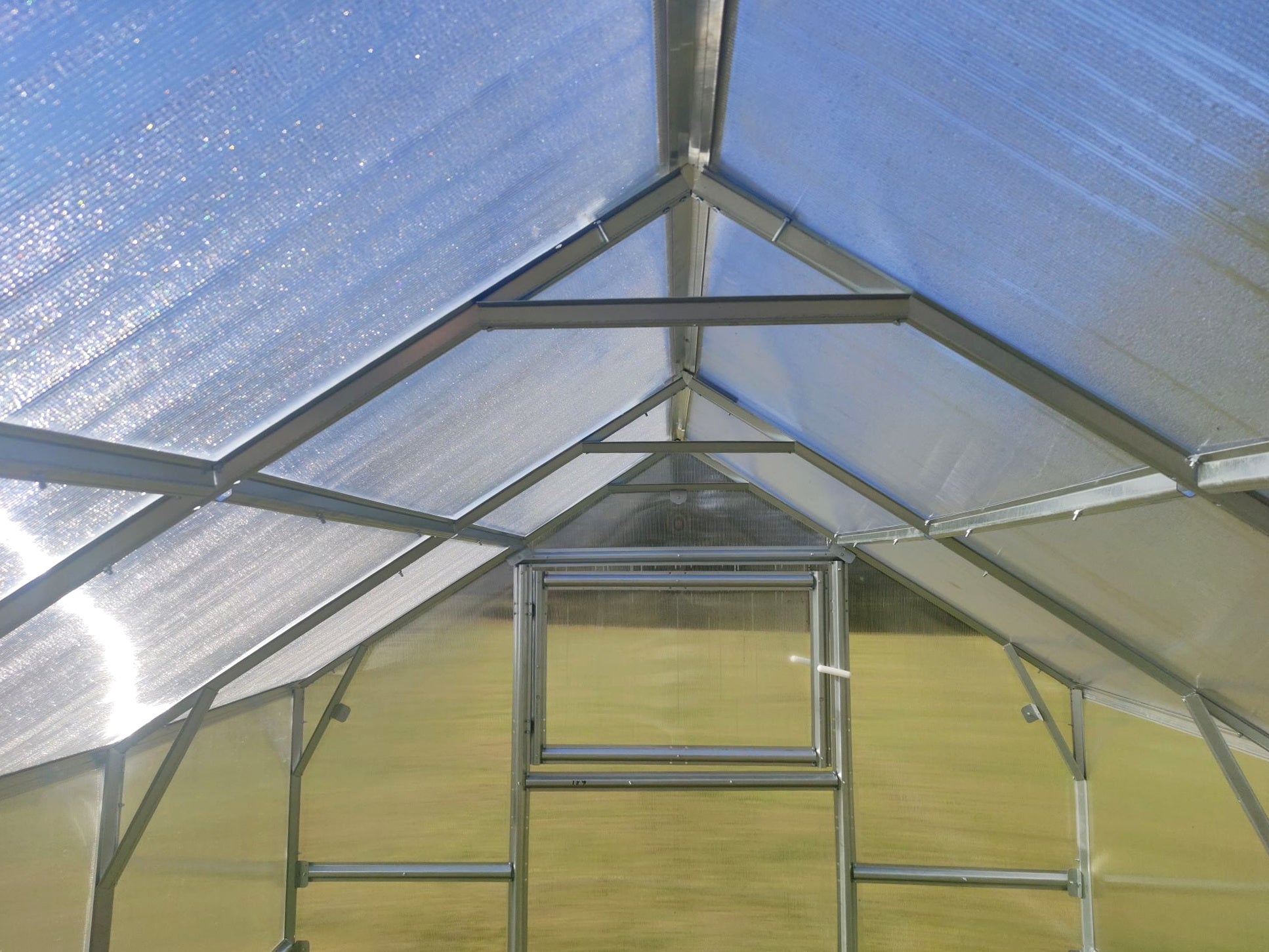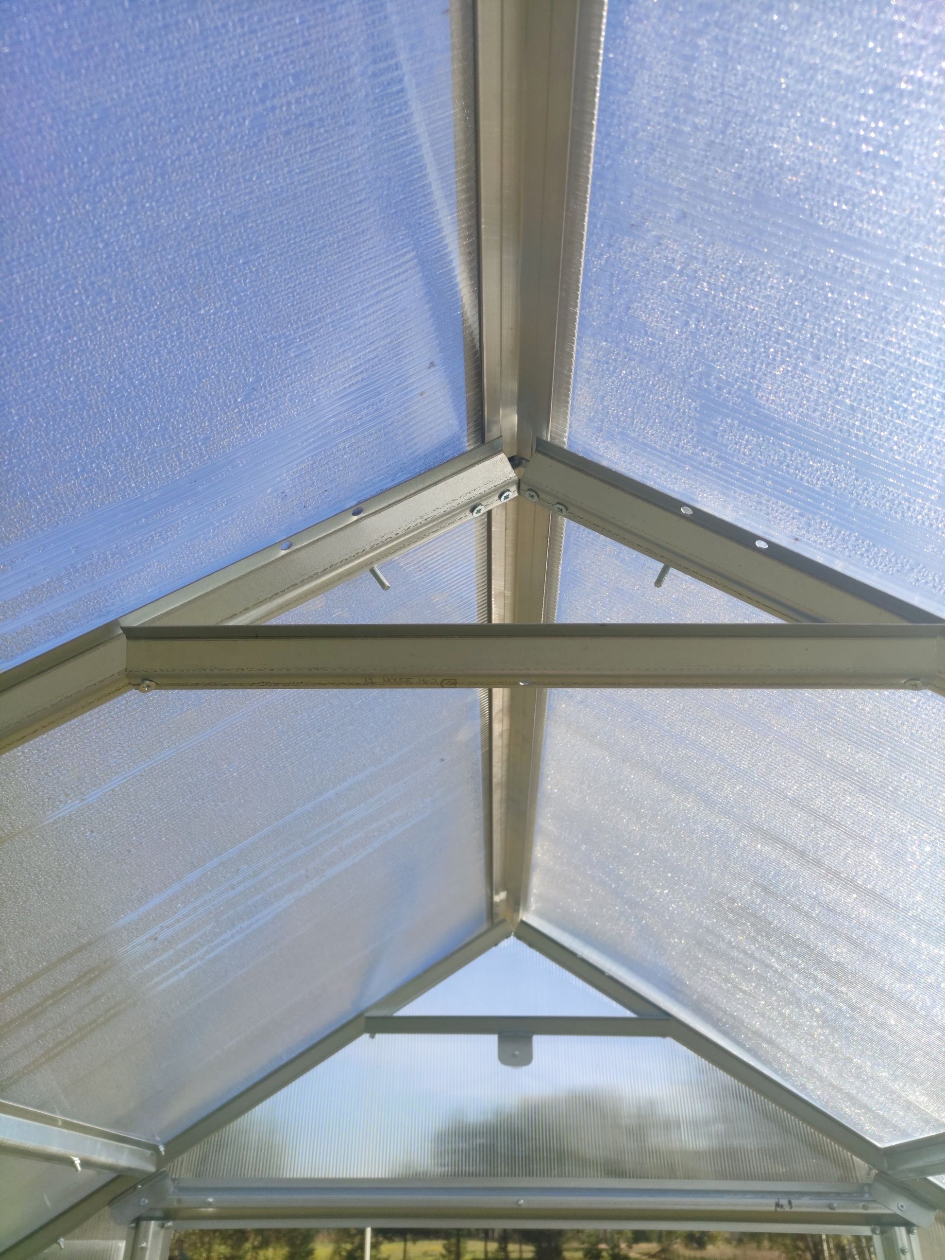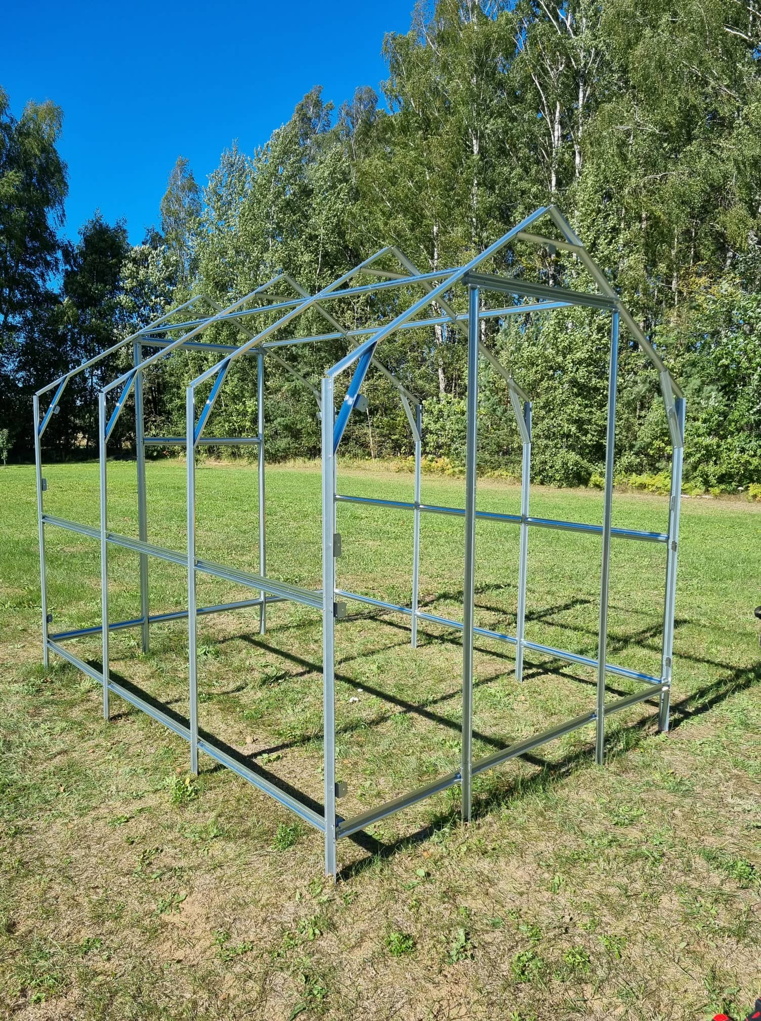 - Moderni, kompakti ja klassinen harjakattoinen kasvihuone. Kasvihuoneessa on sinkitty (275 g/m²) teräsrunko, profiilin leveys on 56 mm, teräksen paksuus 1 mm. Kasvihuone kootaan M5-ruuveilla, ruuvit sisältyvät lähetykseen. Kasvihuoneen runkoterästen väli 99 cm.