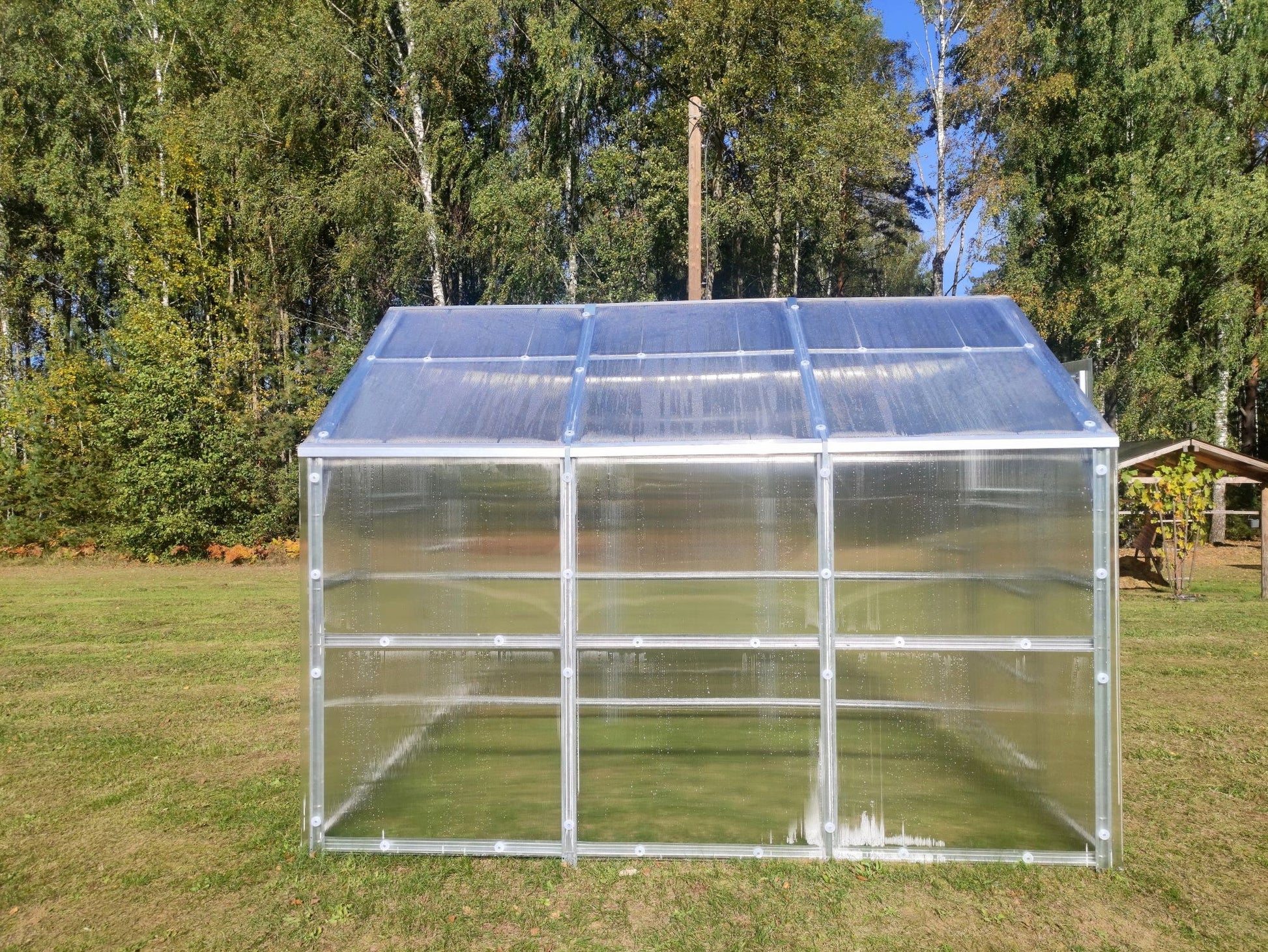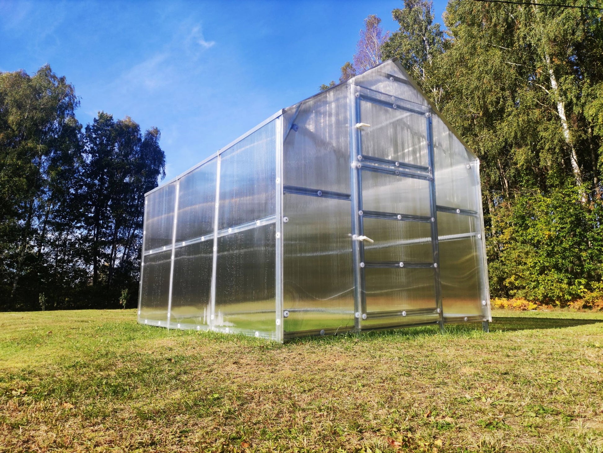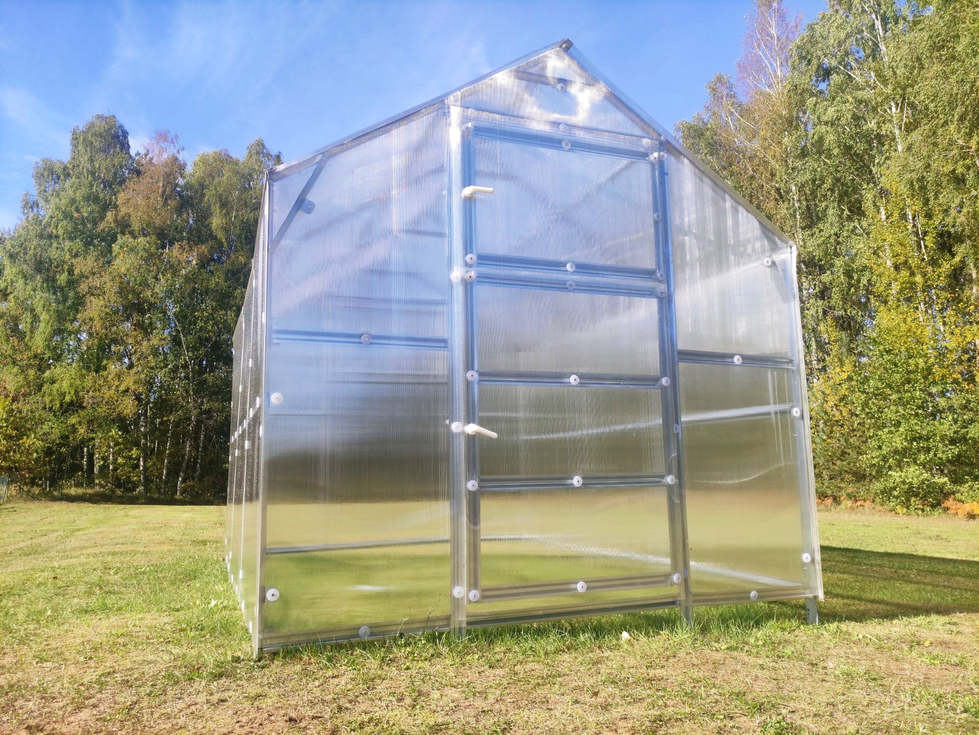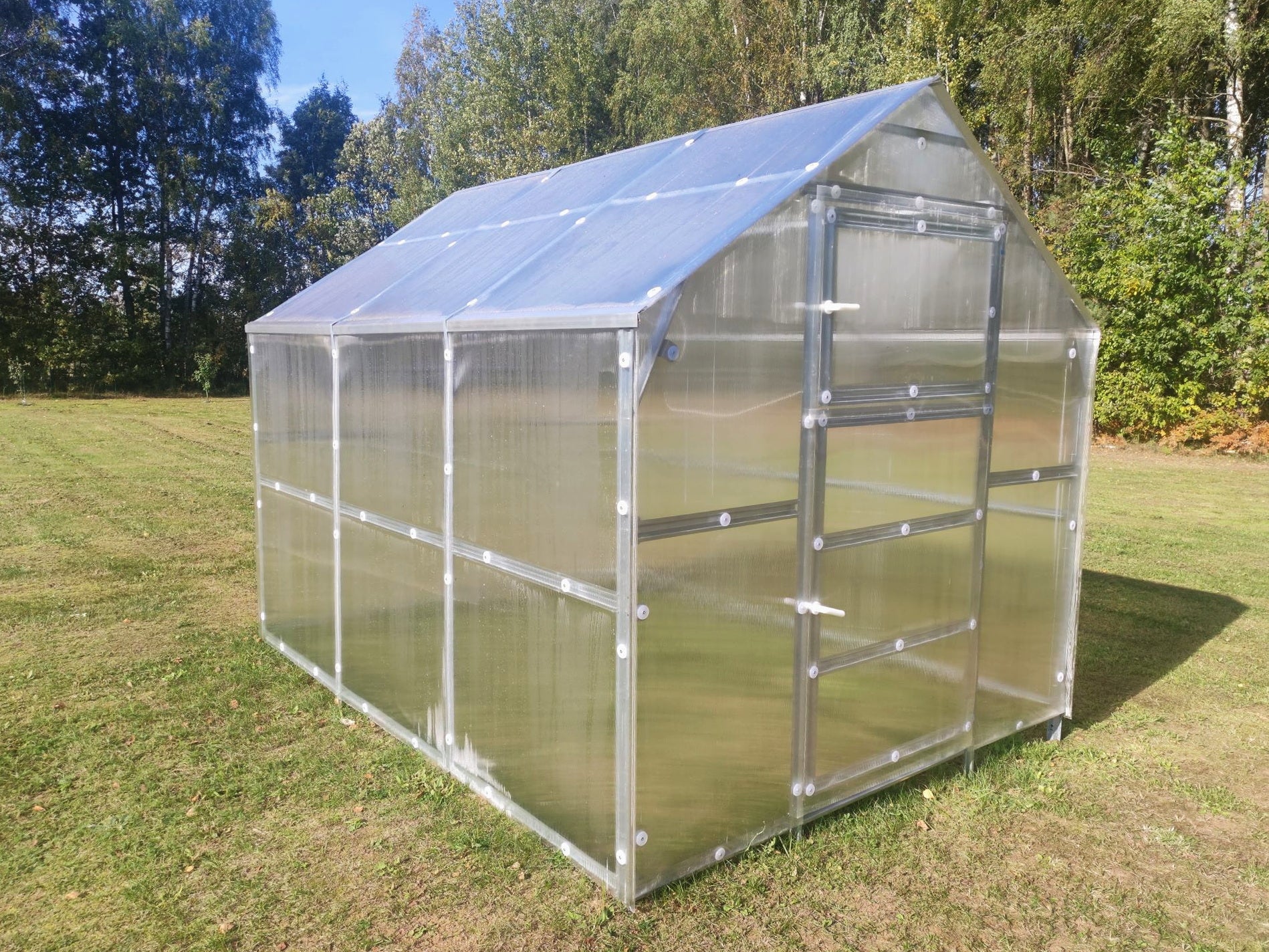- Kasvihuoneen mitat: leveys 2,35 m, pituus 3 m, korkeus 2,35 m, pinta-ala 7,05 m².