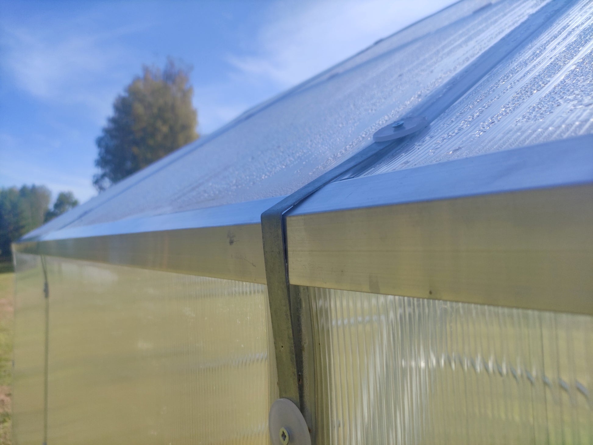 - Kasvihuoneen päällyskatteena on iskunkestävä ja UV-suojattu pc-kennolevy, paksuus valittavissa oman käyttötarpeen mukaan: 4 mm tai 6 mm. Levyt ovat valmiiksi mittoihin leikatut. Lähetys sisältää teipin kennolevyjen päiden sulkemiseen. Teippi estää pölyn ja lian kulkeutumisen kennoputkiin.