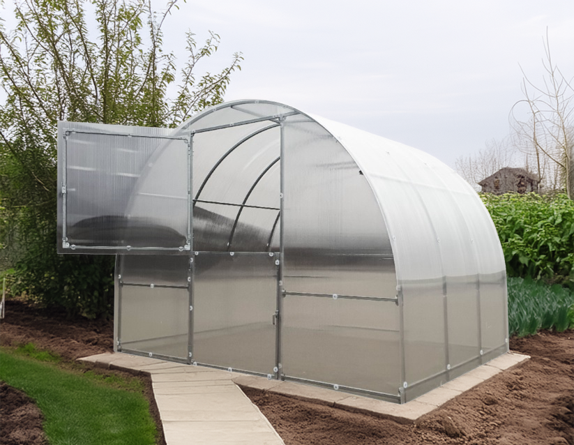 - Kasvihuoneen päällyskatteena korkealaatuinen, eurooppalainen 4 mm tai 6 mm paksuinen polykarbonaattikennolevy. Kennolevy on pitkäikäinen kate ja sillä on erinomaiset lämpöeristysominaisuudet.