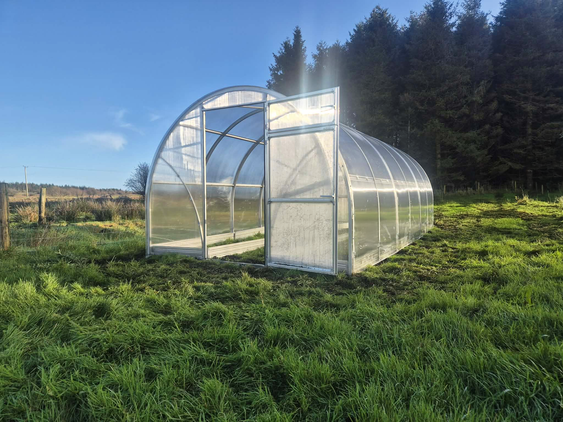 Tiivistetyt ovet (90 × 186,5 cm) molemmissa päädyissä. Oven yläosa voidaan avata erikseen ja käyttää tuuletusikkunana. Tiivisteet auttavat vähentämään lämmönhukkaa ja vetoa sekä luovat tasaisemman kasvuympäristön ja parantavat energiatehokkuutta.