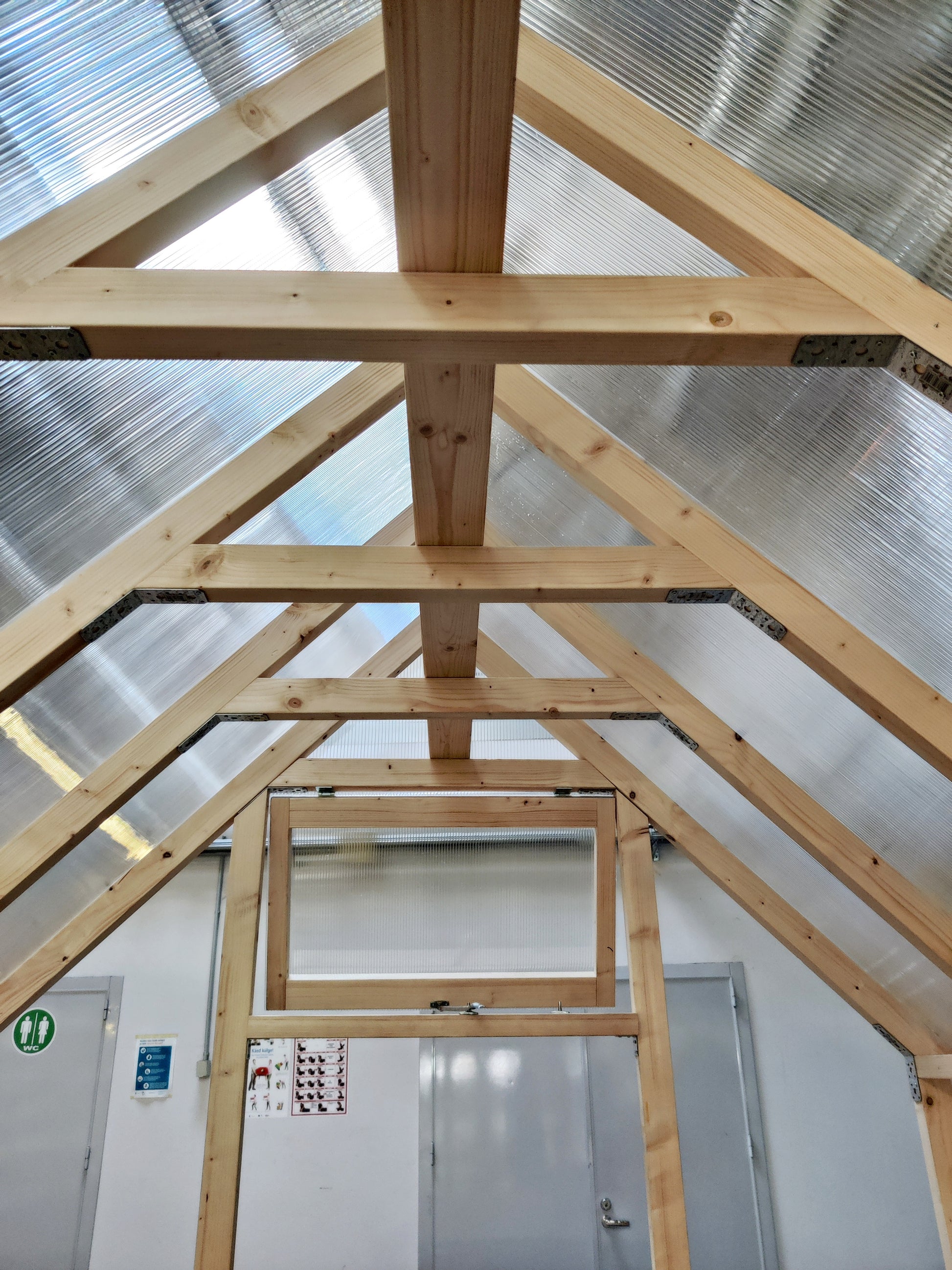 - Kasvihuoneen mitat: leveys 2,1 m, pituus 4,1 m ja korkeus 2,5 m. Pinta-ala 8,7 m². Sivuseinän korkeus 1,5 m.