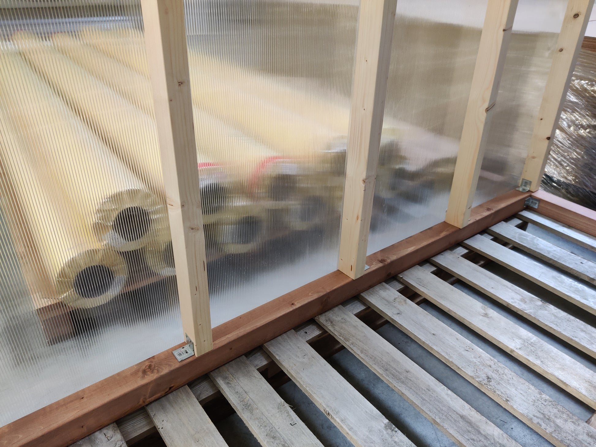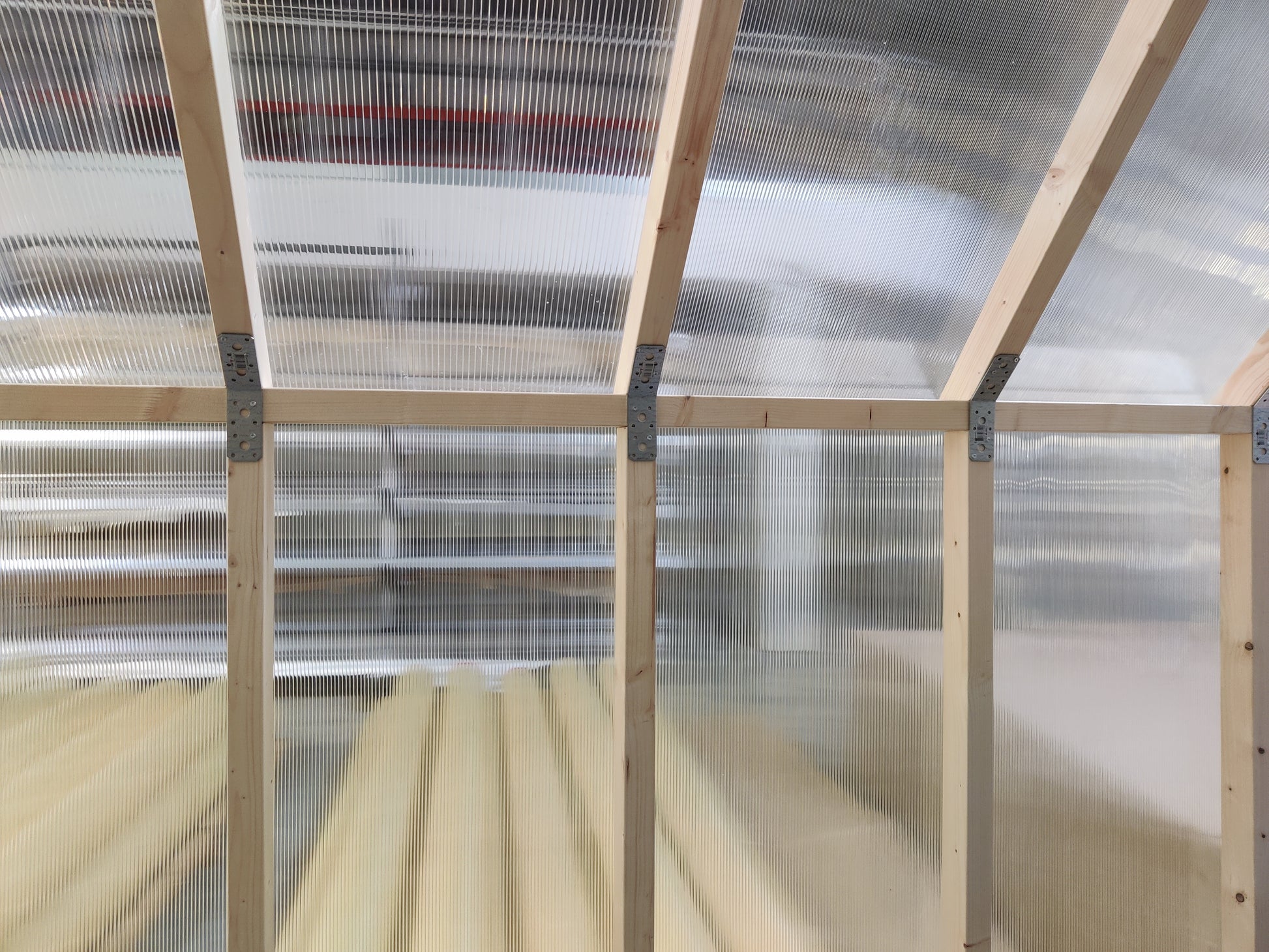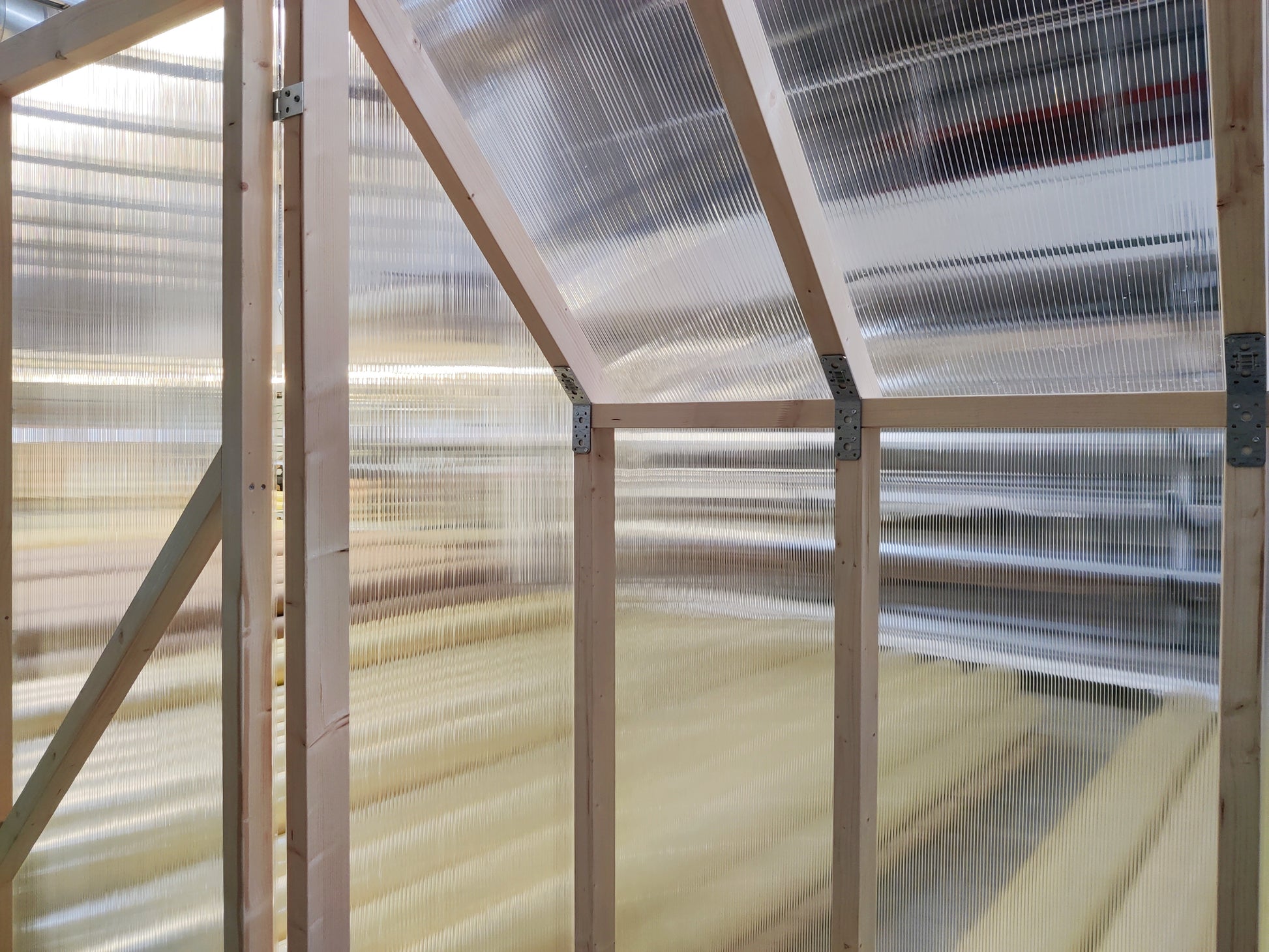 - Kasvihuoneen runko on valmistettu korkealaatuisesta skandinavialaisesta kuusesta. Päällyskatteena kasvihuoneessa on iskunkestävä ja UV-suojattu 4 mm tai 6 mm:n polykarbonaattikennolevy. PC-kennolevyllä on hyvä valonläpäisevyys ja lämmönpitävyys.
