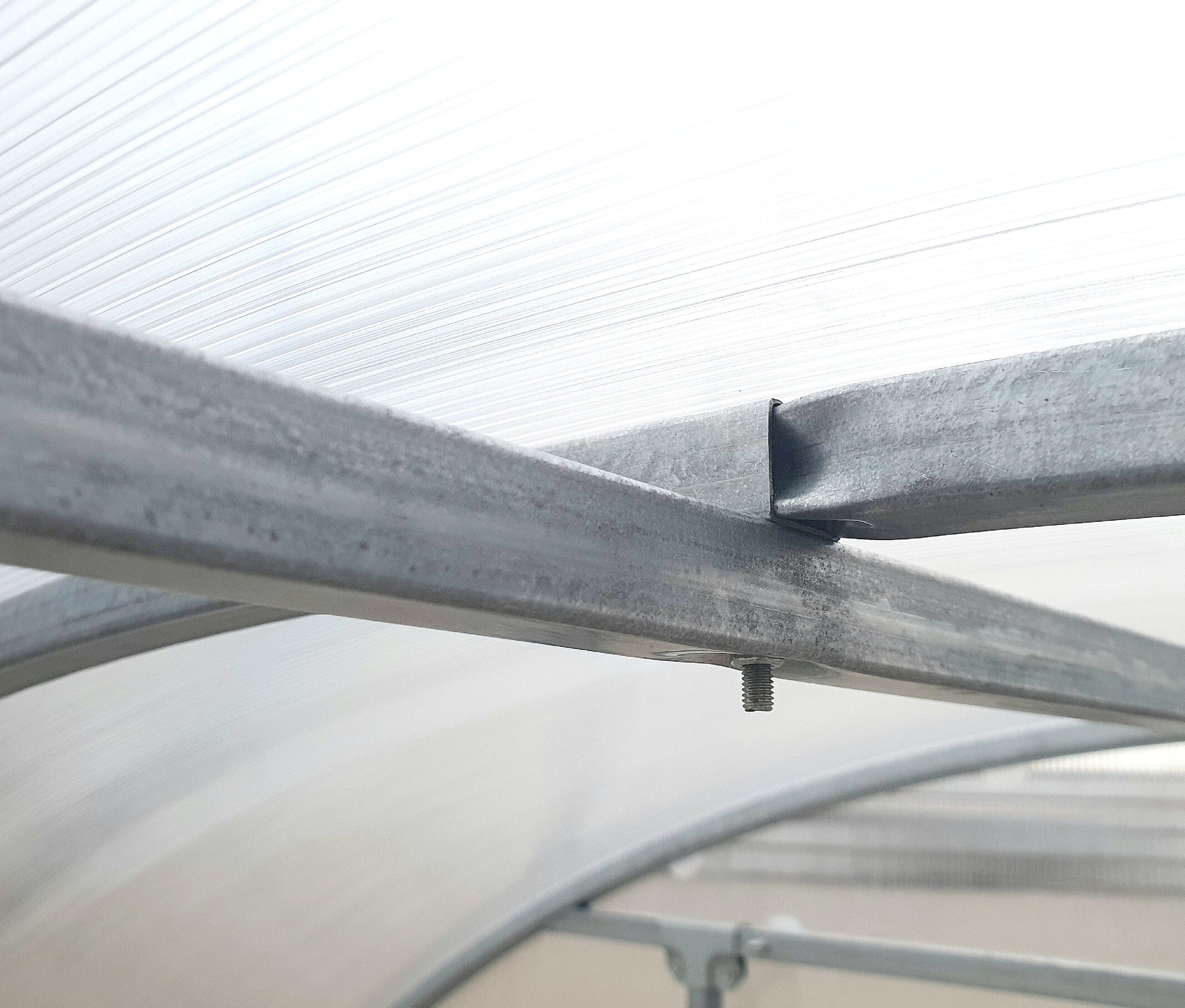 - Kasvihuoneen profiili on valmistettu 20x20 mm vahvasta sinkitystä teräsputkesta. Kaarien väli on 67 cm. Runko kootaan M5-ruuveilla.