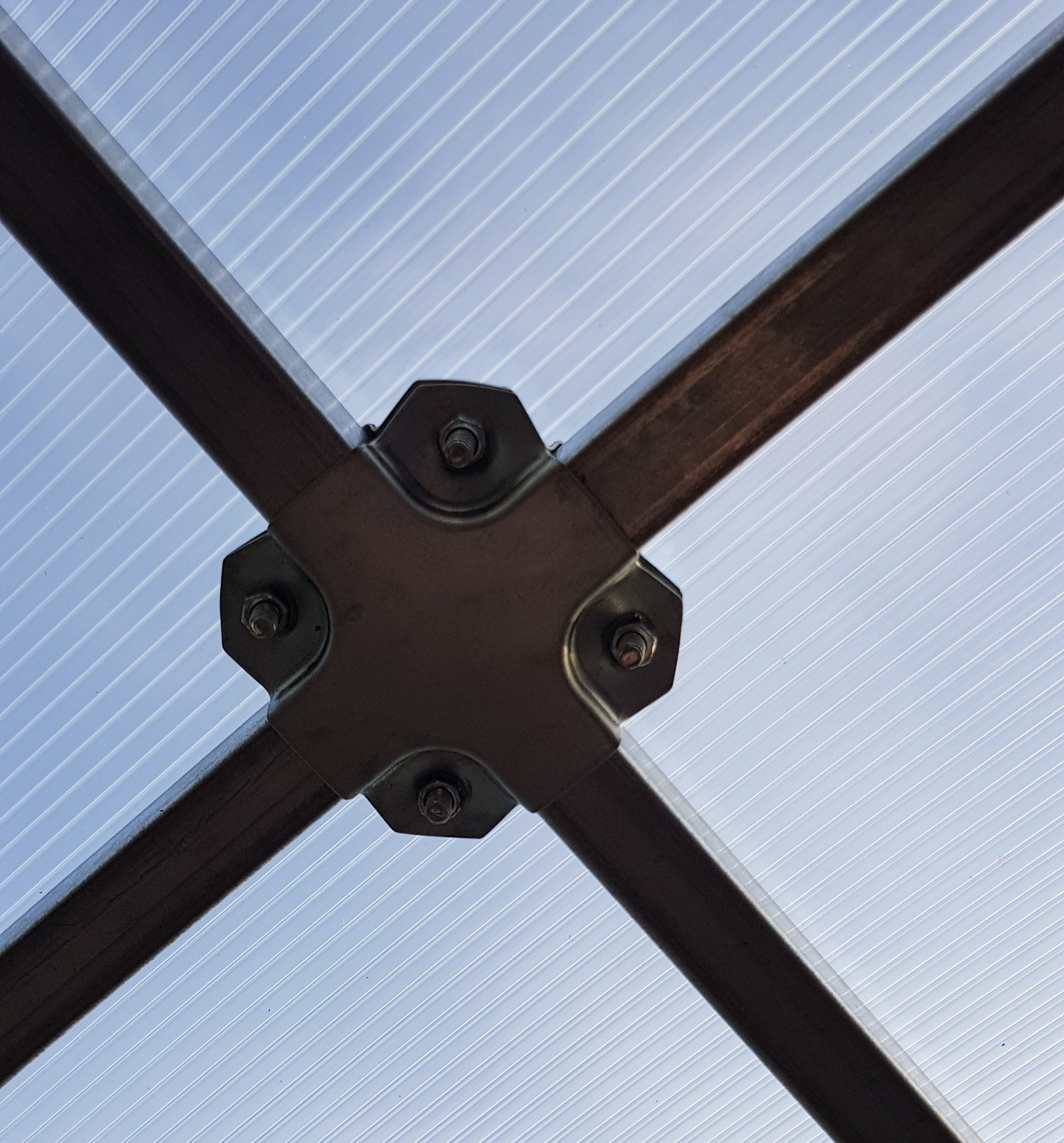 - Quadra Strong-kasvihuoneen profiili on vahvaa ja sinkittyä nelikanttiputkea 20 x 20 mm. Kasvihuoneen teräskaarien väli on tiheä, 67 cm.