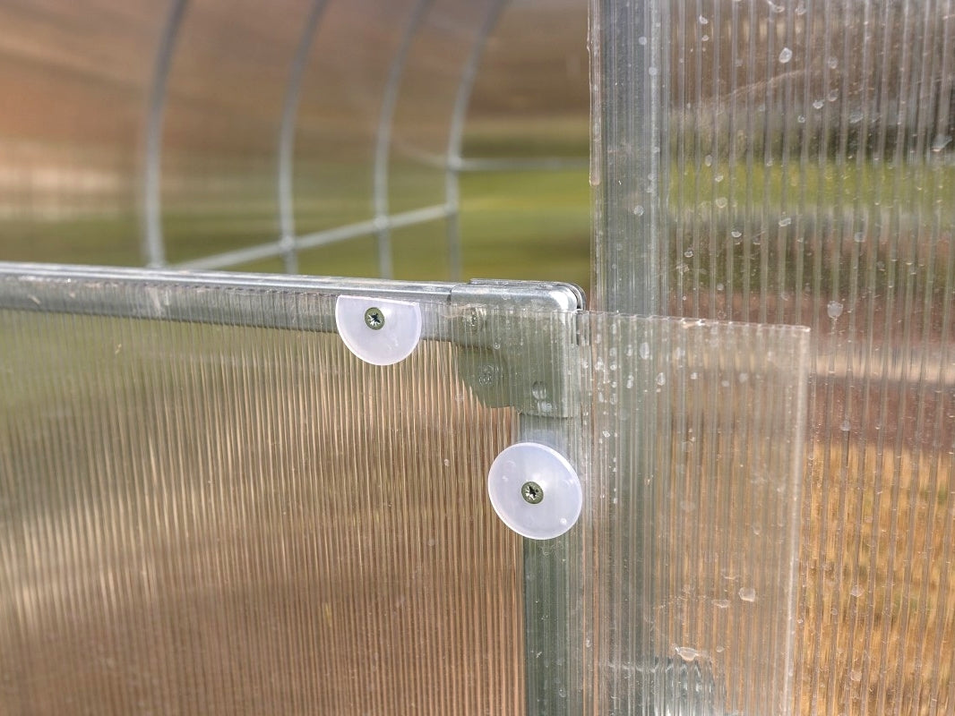 - Päällyskatteena laadukas iskunkestävä ja UV-suojattu polykarbonaattikennolevy 4 mm tai 6 mm, paksuus valittavissa oman tarpeen mukaan. Polykarbonaattikennolevy on kasvihuoneiden katemateriaalina suosittu ja ylivertainen. Kennolevyillä on erinomainen rakenteellinen kestävyys, vahva UV-suojaus, hyvä iskunkestävyys ja korkea valonläpäisykyky. Kennolevy on helppohoitoinen sekä lämpöä eristävä materiaali, joten kasvit selviävät tarvittaessa viileämmistäkin öistä. Kennolevyt toimitetaan 2100 x 6000 mm levyinä rullassa.
