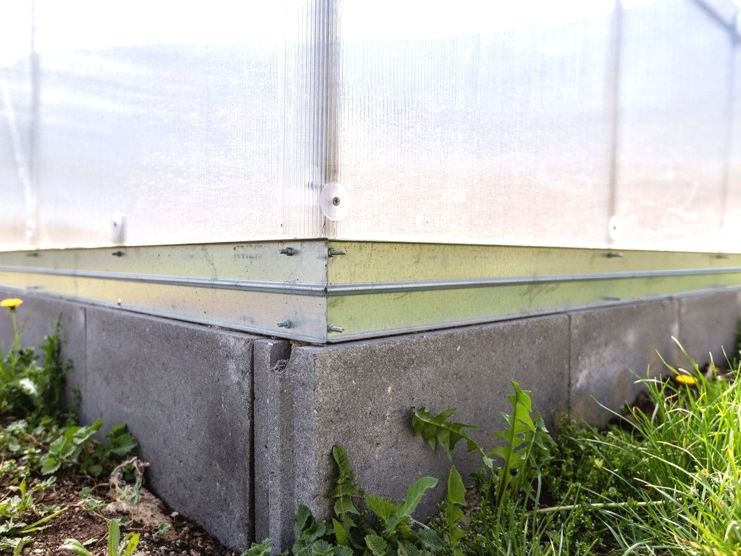 - Tämä kasvihuone sisältää rakennetta vahvistavan sinkityn terässokkelin! Sokkelin korkeus 10 cm, teräksen paksuus 1 mm.
