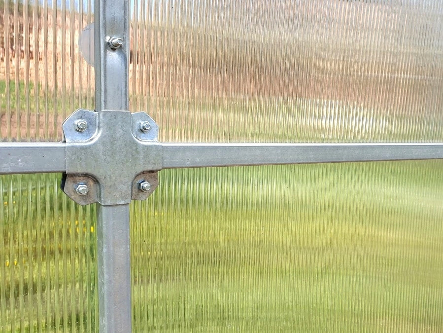 - Quadra Strong-kasvihuoneen profiili on vahvaa ja sinkittyä nelikanttiputkea 20 x 20 mm. Kasvihuoneen teräskaarien väli on tiheä, 67 cm.