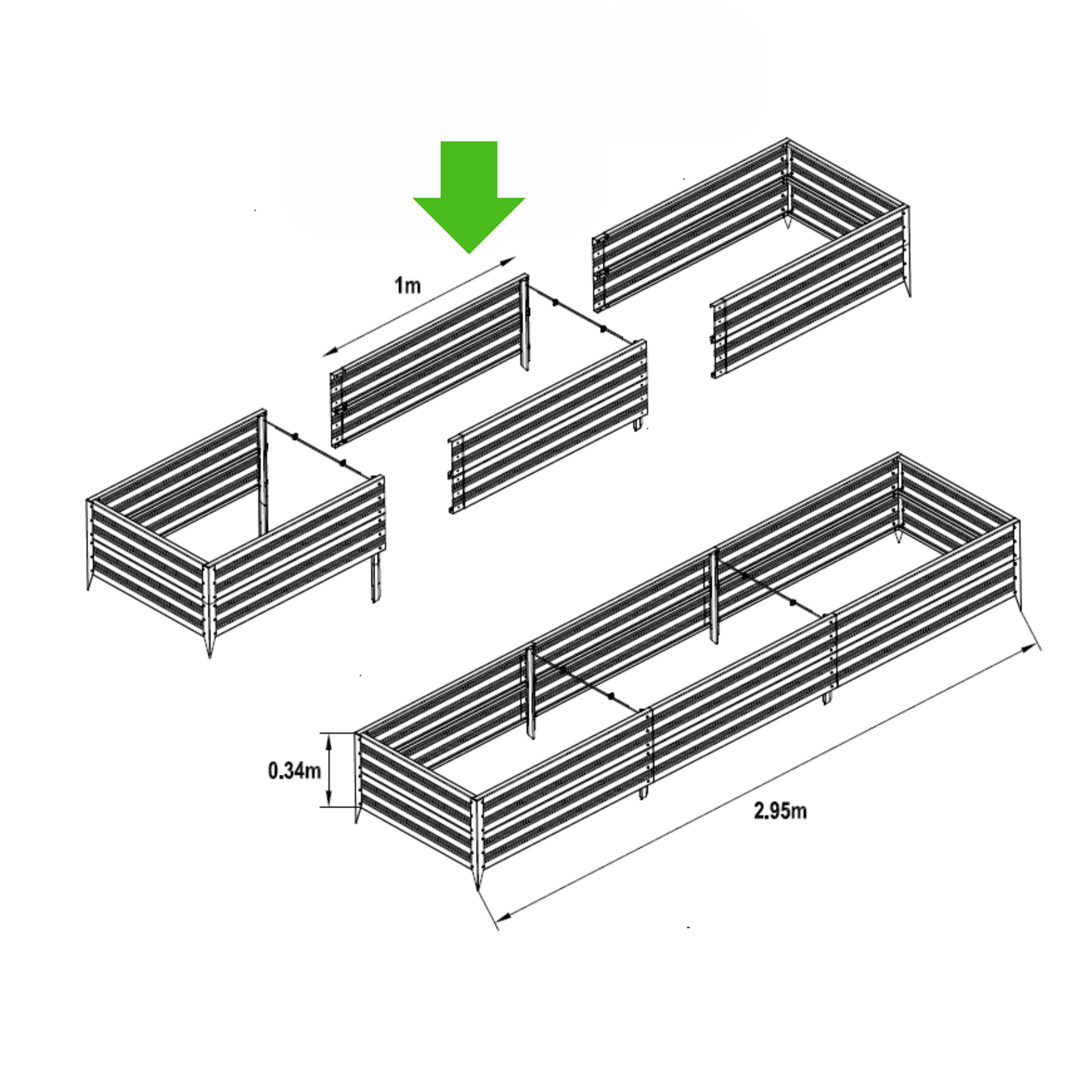 - Sopii 0,7 ja 1 metriä leveille viljelypenkeille ja niiden jatkamiseen yhdellä metrillä haluttuun pituuteen.